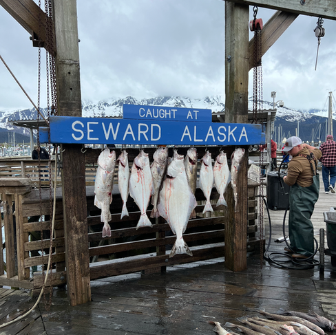 Wenn ihr Alaska aus Filmen kennt, dann wisst ihr genau, wie Seward aussieht. Ein kleines Fischerdorf mit charmanten Holzhäuschen, die sich aneinanderreihen und direkt am Meer liegen. Wir schlendern durch das entzückende Dorf und bummeln durch einige Souvenirläden. Am Pier sehen wir die ersten Fischer, die von ihrem Tag auf See zurückkehren und ihren Fang noch auf dem Steg zerlegen. Das zieht natürlich einige neugierige Tiere an, und so entdecken wir die erste Robbe, die sich die weggeworfenen Fischreste schnappt.